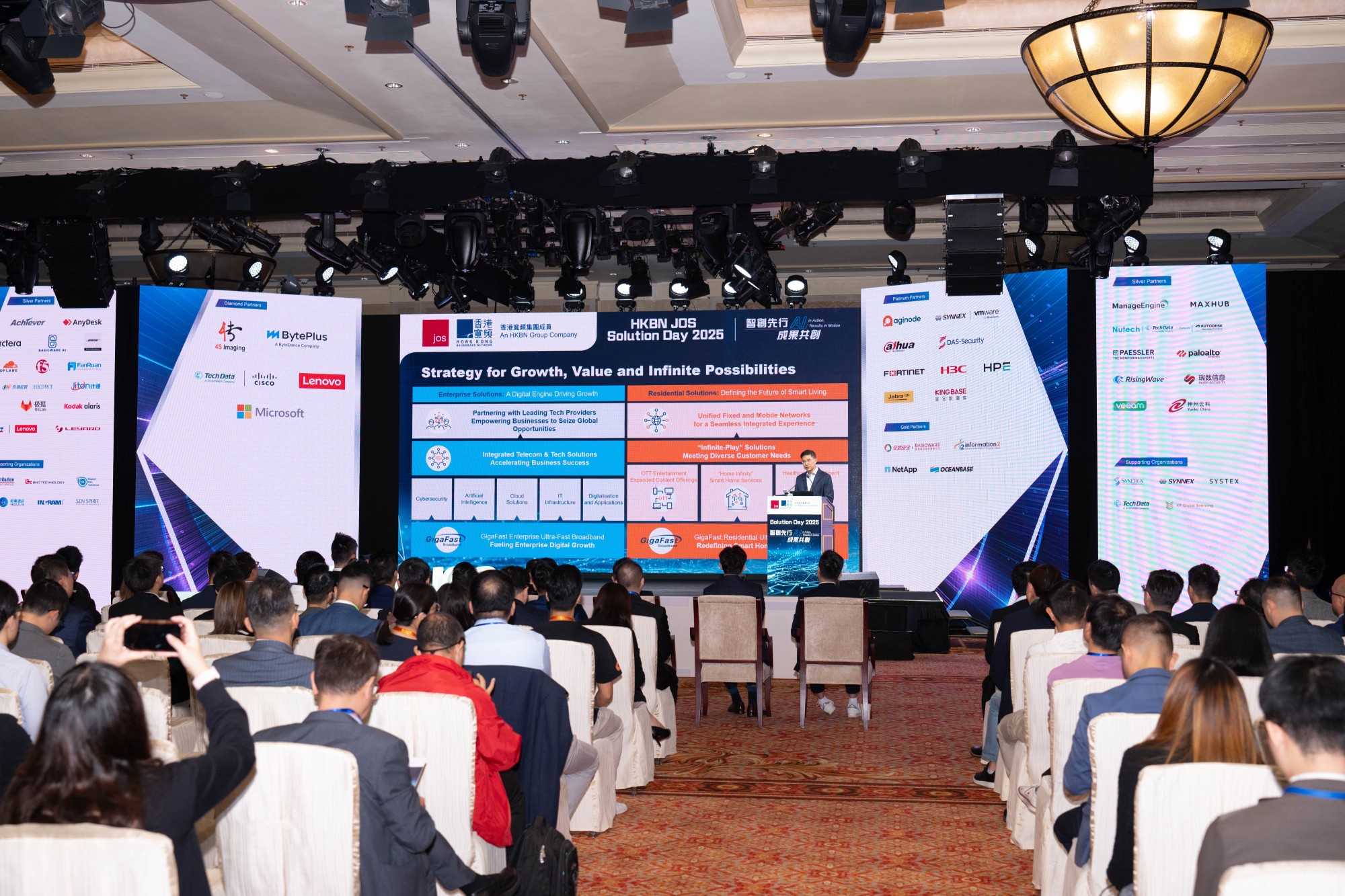 港宽科技HKBN JOS(澳门)于2025年11月12日在中国澳门伦敦人康莱德酒店举行年度活动“HKBN JOS Solution day 2025”,以“智创先行·成果共创”为主题,汇聚逾四百名业界精英、科技专家及企业代表参与。
