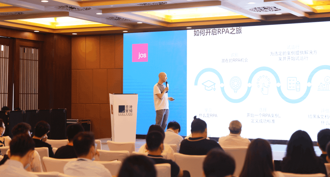 HKBN JOS作为智能自动化先行企业,深谙企业数字化发展的切实需求。在会议中围绕着释放人才创造力、跨系统交互协同、流程标准化提效、灵活弹性部署等优势展开全体系的研究分享。