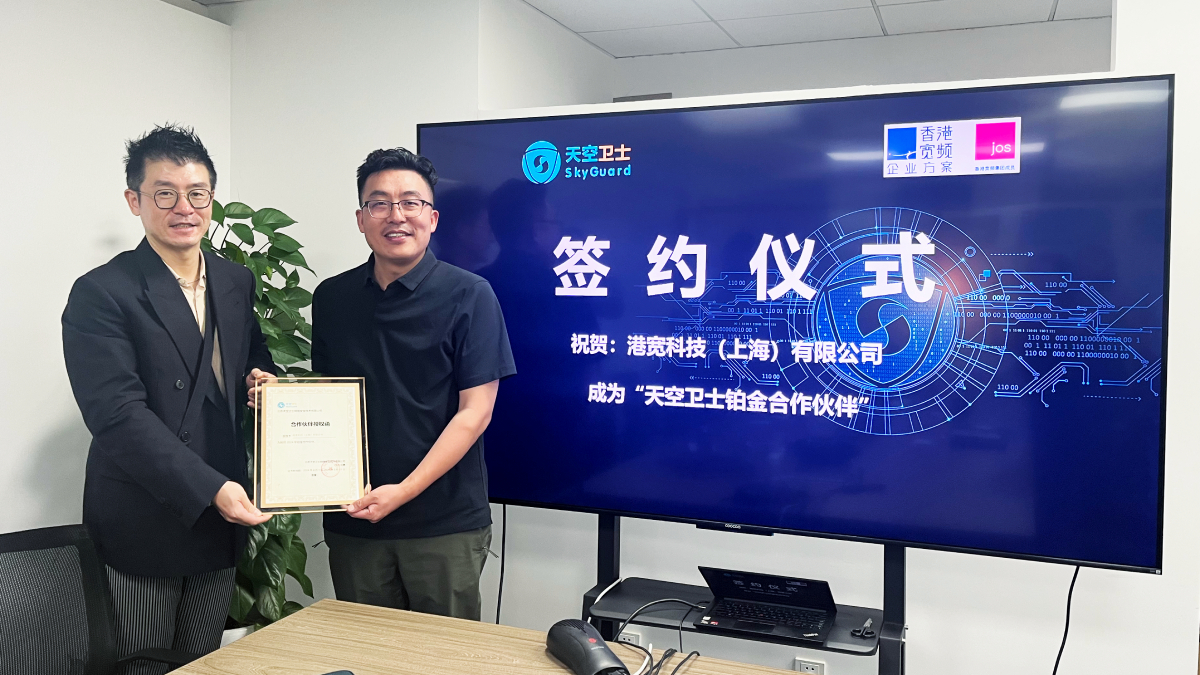 日前,港宽科技HKBN JOS 与 北京天空卫士网络安全技术有限公司(以下简称“天空卫士”)举行了战略合作签约仪式,并宣布双方正式建立战略合作伙伴关系,这标志着两家公司在数据安全领域的深度融合。通过结合HKBN JOS的企业解决方案专业知识和天空卫士的先进数据安全技术,双方共同为客户提供了一流的数据保护和业务增长解决方案。